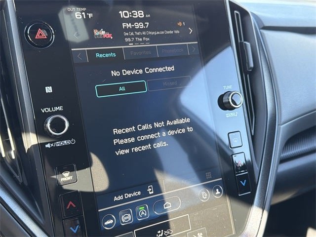 - Radio: Subaru 11.6" Multimedia Plus System -inc: AM/FM stereo, HD Radio, multi-touch gesture high resolution display screen, voice activated controls, Bluetooth® audio streaming and hands-free phone connectivity, Bluetooth® hands-free SMS text messaging connectivity, iPod control capability, smartphone integration: wired and wireless Android Auto w/full screen view and wireless Apple CarPlay w/full screen view, USB and Over The Air (OTA) audio system update, steering wheel audio system and Bluetooth® control switches, 6 speakers (2 dash panel tweeter, 2 front door and 2 rear door), illuminated 3.5mm auxiliary input jack, illuminated front USB A and C input/charge ports, connected services operation indicator, SOS emergency assistance: red SOS button and enhanced roadside assistance: blue i-button