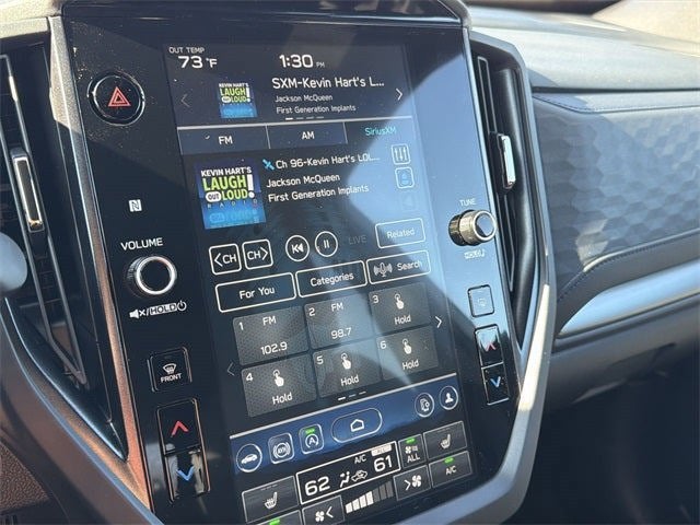 - Radio: Subaru 11.6" Multimedia Plus System -inc: valet mode, integrated center information display, AM/FM stereo HD Radio, multi-touch gesture high resolution display screen, voice activated controls, Bluetooth® audio streaming and hands-free phone connectivity w/SMS text messaging (refer to Subaru.com for cellphone compatibility), iPod control capability, smartphone integration: Android Auto and Apple CarPlay w/full screen view and wireless connection, SiriusXM satellite radio w/360L (free 4-month trial subscription included), USB and Over The Air (OTA) audio system update, steering wheel controls, 6 speakers, 3.5mm auxiliary input jack and roof mounted audio and satellite antenna