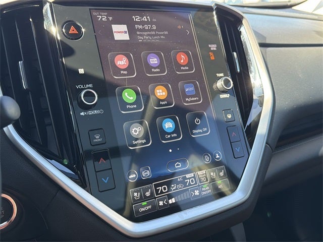 - Radio: Subaru 11.6" Multimedia System w/Navigation -inc: AM/FM stereo HD Radio, multi-touch gesture high resolution display screen, voice activated controls for radio and navigation, Bluetooth® audio streaming and hands-free phone connectivity w/SMS text messaging connectivity (refer to subaru.com for cell phone compatibility), Near Field Communication (NFC), TomTom navigation software w/what3words, iPod control capability, smartphone integration for Android Auto and Apple CarPlay w/full screen view and wireless connection, USB audio system update, TomTom navigation system update w/USB/Map Over The Air (MOTA) (3 years free map updates), steering wheel control switches for audio and Bluetooth®, harman/kardon quantum logic surround sound speaker system w/14 speakers, subwoofer and harman/kardon 792 watt equivalent maximum output amplifier, 3.5mm illuminated auxiliary input jack, illuminated USB A and C input/charge ports, SiriusXM w/360L (4 months free trial included/subscription required after), SiriusXM Travel Link (4 months free trial included/subscription required after) and SiriusXM Traffic (3 years free trial included/subscription required after)